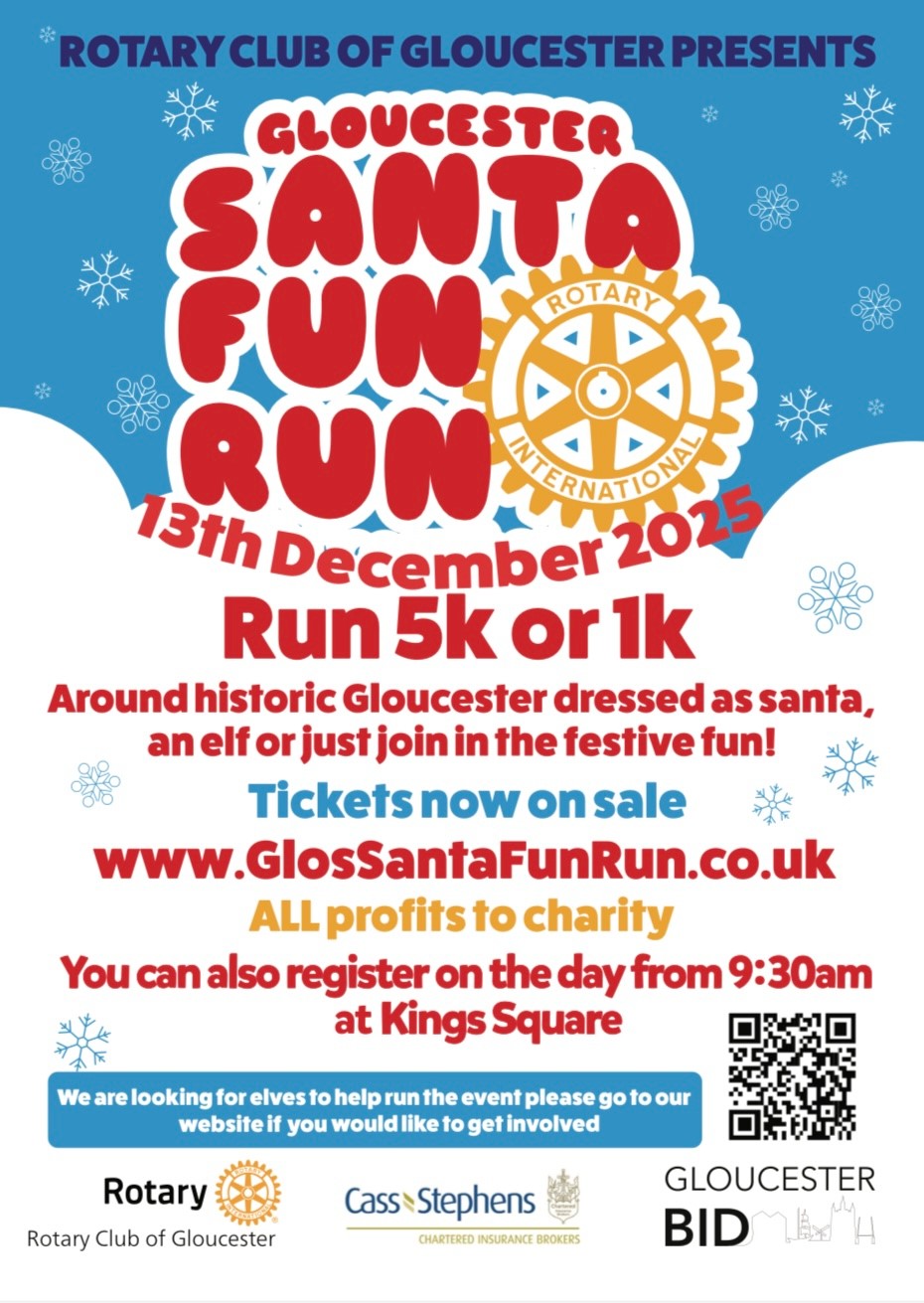 The now annual Matt Cass organised Gloucester Santa Fun Run is On Saturday 13th December at 09:30 in the King’s Square, Gloucester.